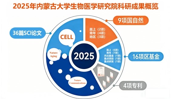 回望2025年,内蒙古大学生物医学研究院在科研创新道路上迈出坚实步伐。在学校“双一流”建设的战略指导下,研究院围绕国家战略需求与区域特色方向,聚焦生物医学前沿领域,在标志性成果突破、高端人才汇聚、创新平台建设等方面取得系统性进展,为服务健康中国战略和区域高质量发展奠定了坚实基础。现将全年科研工作详细总结如下: